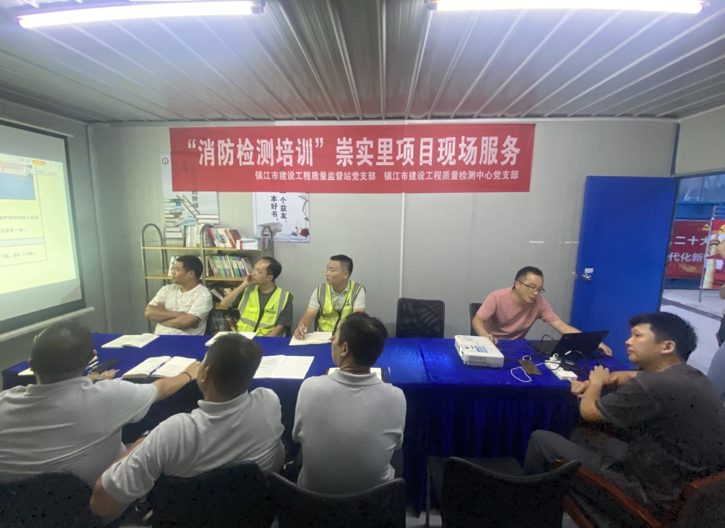 2023年8月29日晚,在崇实里项目“先锋公社”,镇江市建设工程质量监督站党支部和镇江市建设工程质量检测中心党支部联合开展了“消防检测培训”现场服务活动。